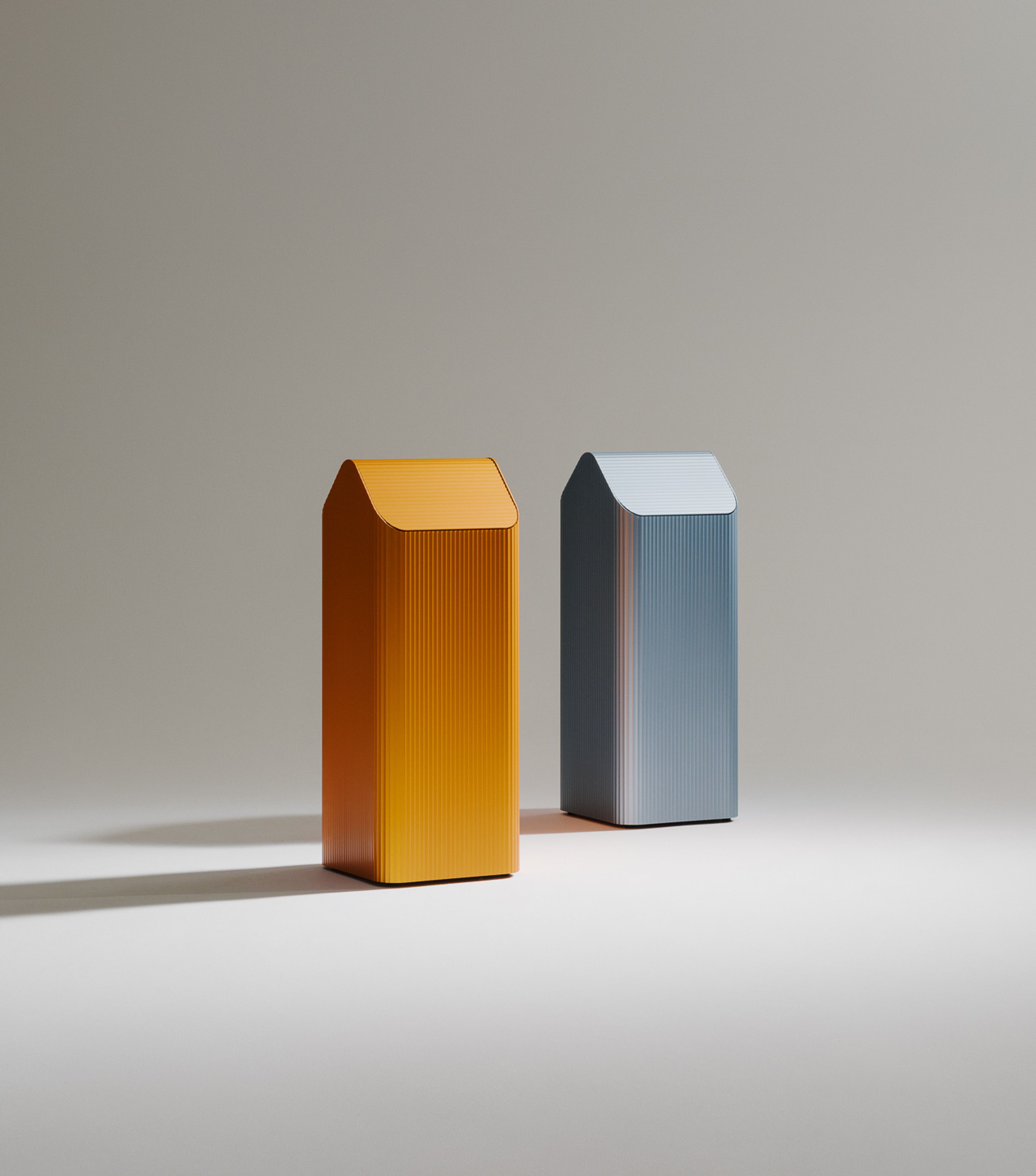 BOSS by German designer Stefan Diez embodies a thoughtful approach to waste management. Made from a minimum of recycled aluminum extrusion profiles, it transforms recycling into an intentional, visible act. More than a bin, BOSS is a statement in design and sustainability—redefining the waste bin as an object meant to be seen rather than hidden. Precision engineering gives BOSS its unique functionality. Its clever design enables efficient production: the square bins are crafted from a single aluminum profile, which also serves as the lid for the smaller, round bins. The feet, bag holders, and pivoting axis of the lids are all formed from the same steel wire, reinforcing a consistent and resource-efficient design approach. The name itself plays on dual meanings—in some regions of Norway, “boss” means trash. BOSS is a nod to both Norwegian heritage and the product’s strong, assertive presence.