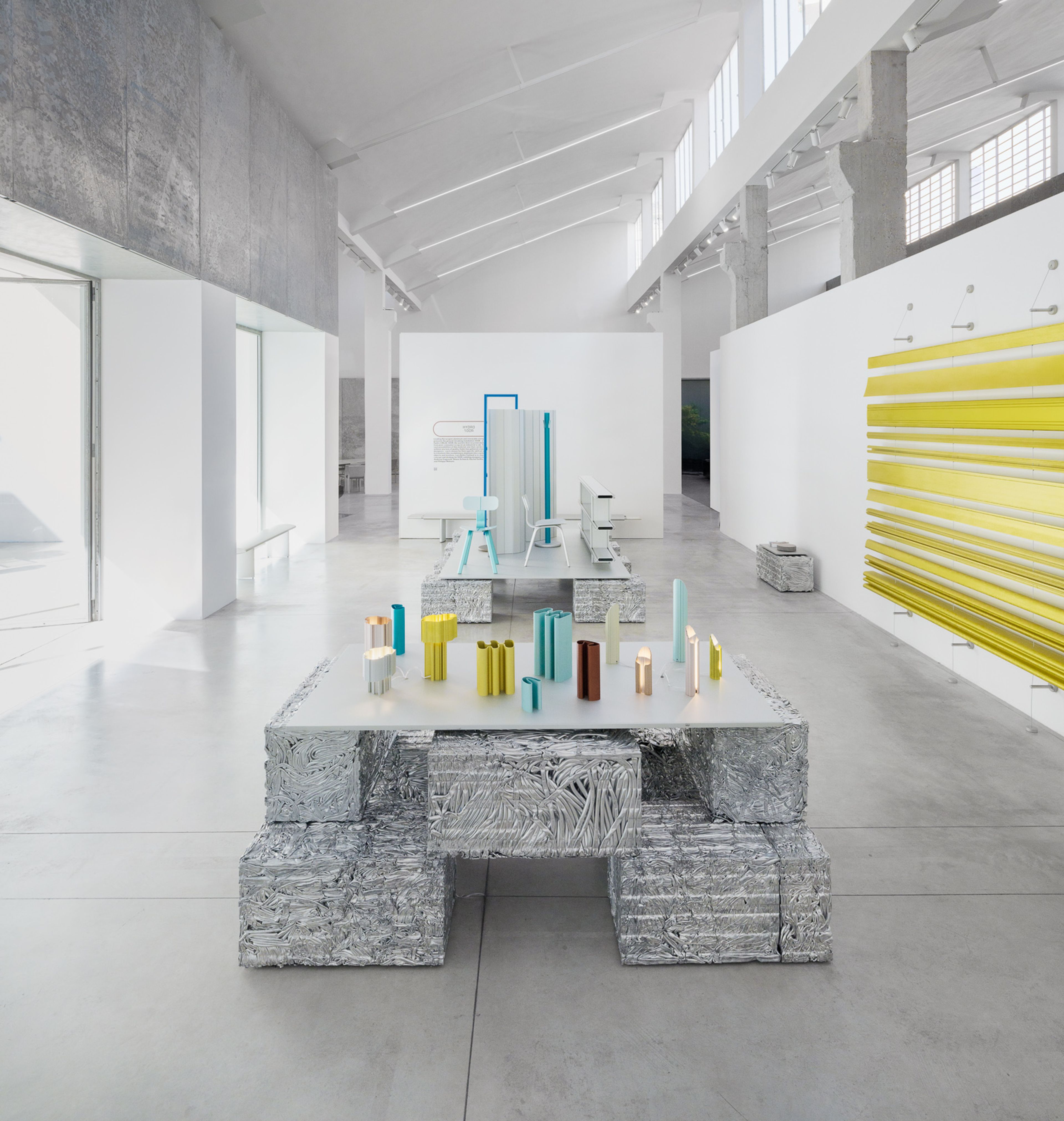 Starting where the greatest gains were to be made – with the material itself – Hydro introduced the world's first industrial-scale aluminium made entirely from recycled post-consumer scrap with Hydro CIRCAL 100R for Milan Design Week in 2024. The carbon footprint of HYDRO CIRCAL 100R is below 0.5 kg CO2e / kg aluminium, 97% lower than the global primary average. Hydro put Norwegian Designer and Art Director Lars Beller Fjetland in charge of art direction, concept development and strategy for the 100R project and exhibition. He in turnenlisted designers Inga Sempé, Max Lamb, Andreas Engesvik, Shane Schneck, Rachel Griffin, John Tree and Philippe Malouin, to create design objects made entirely from Hydro’s new recycled aluminium product.